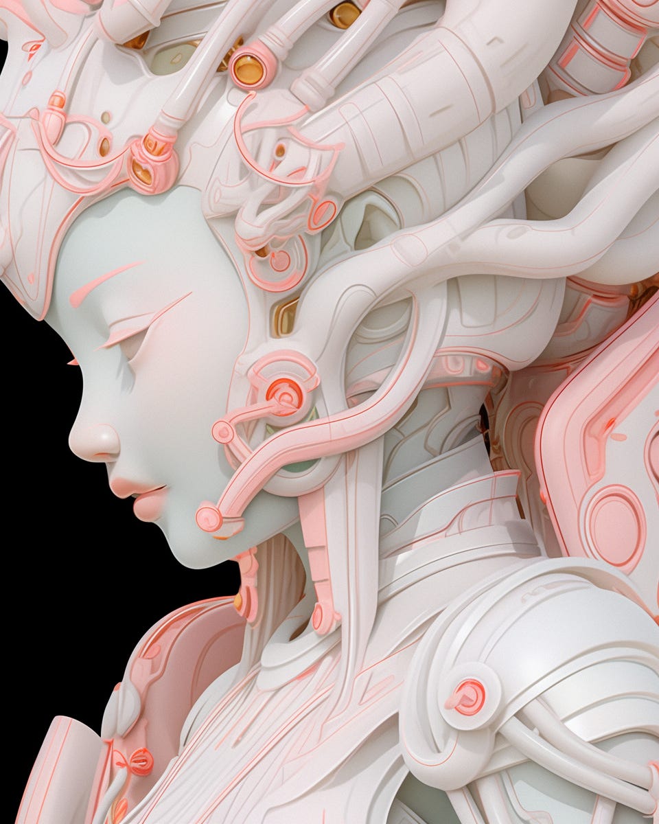 Midjourney v5.2 👆 Prompt: close-up detailed Ghost in the Shell, 3D printing, additive manufacturing, layered creation, digital fabrication, 3D printed object, prototyping, complex geometry, fused deposition modeling, stereolithography, selective laser sintering --ar 80:100 --niji 5